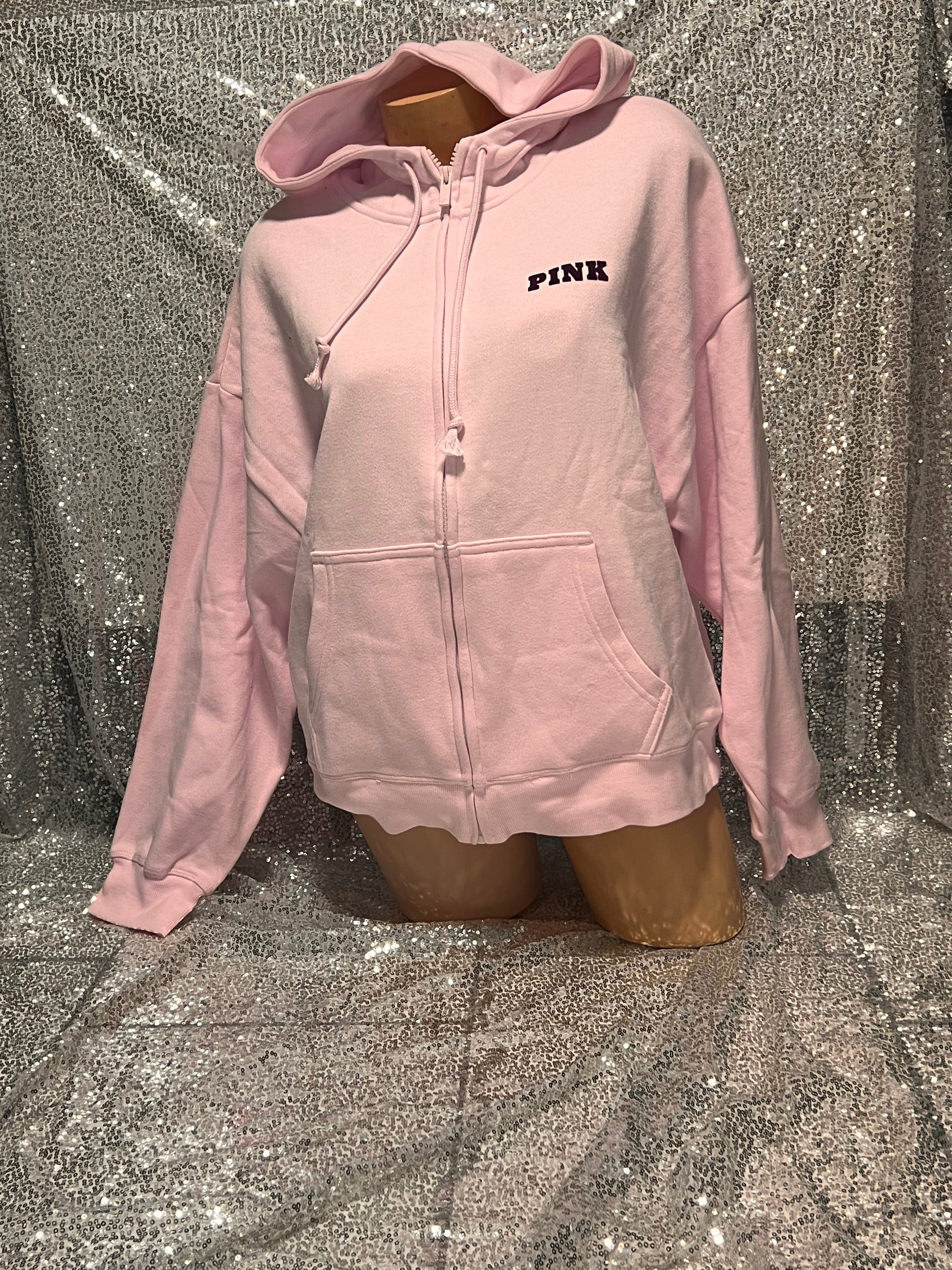 Wrap yourself in pure softness with this dreamy pink full-zip hoodie featuring a luxe velvet logo that's as touchable as it is gorgeous. The gentle pink palette creates an effortlessly chic vibe, while the plush velvet detailing adds a touch of elegance and texture. Full-zip convenience meets cozy comfort in this must-have piece that feels as good as it looks. Softness never felt so stylish!